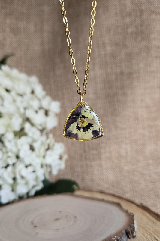 Złoty wisiorek kwiatowy bukiet bratek kwiat - Sklep Online Artyferia