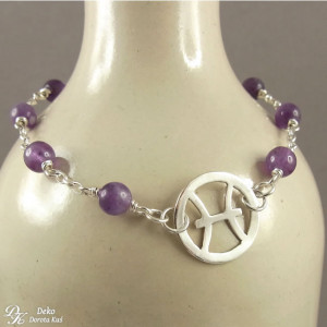 Znaki zodiaku - RYBY i ametyst - bransoletka