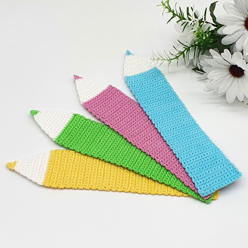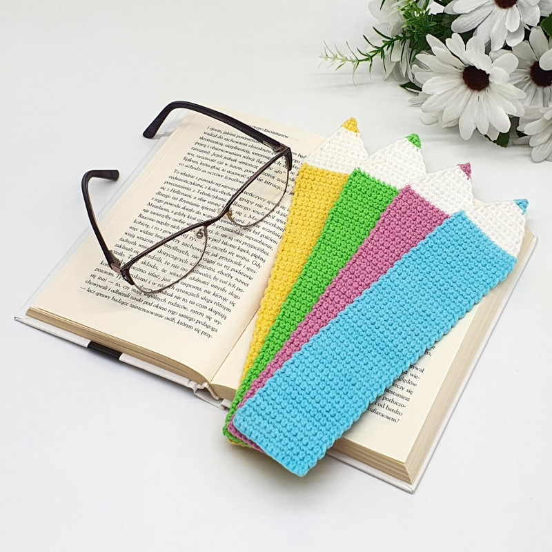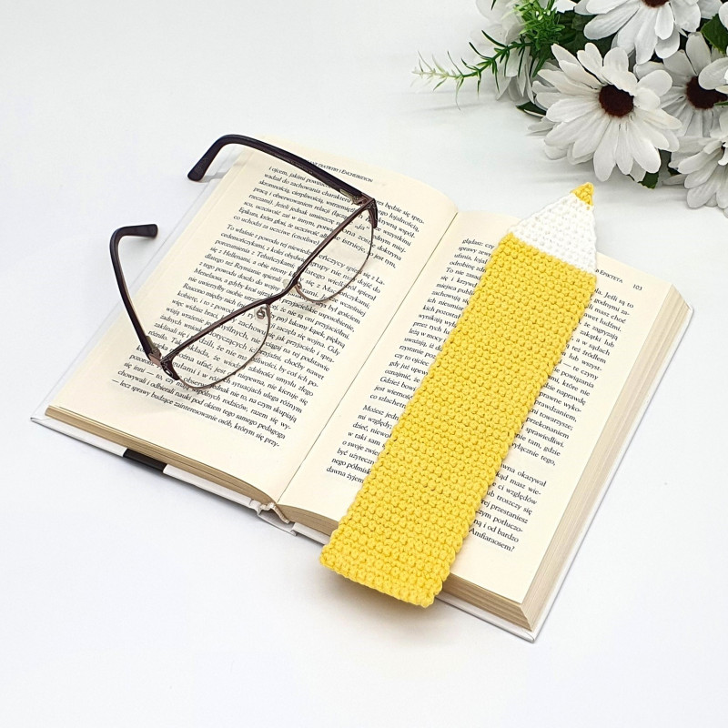 Zakładka do książki - żółta kredka wykonana została na szydełku, z włóczki. Wymiary zakładki to: 24,5 cm x 5 cm.